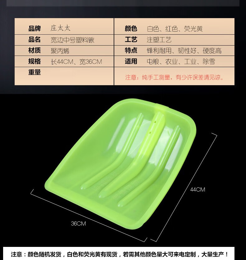 庄太太(1.2宽边塑料锹+1.2米木杆)塑料锹农用工具塑料胶铲推雪铲塑料锨