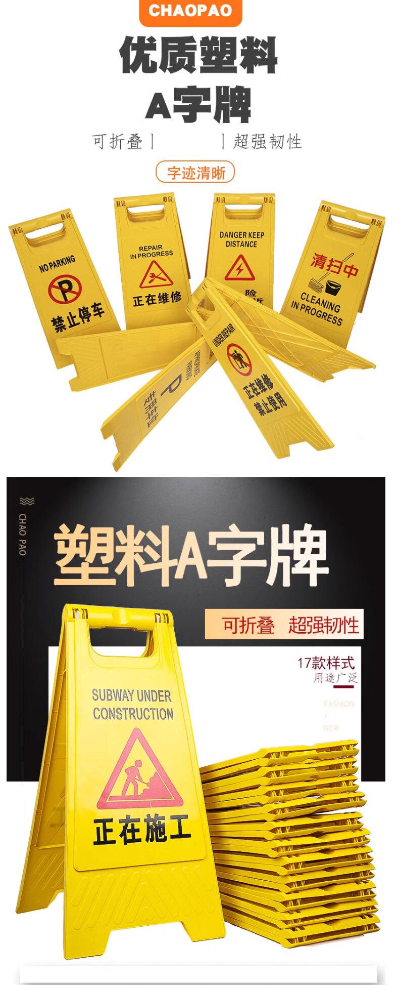 Homeglen A字告示牌警示牌塑料指示牌 小心地滑