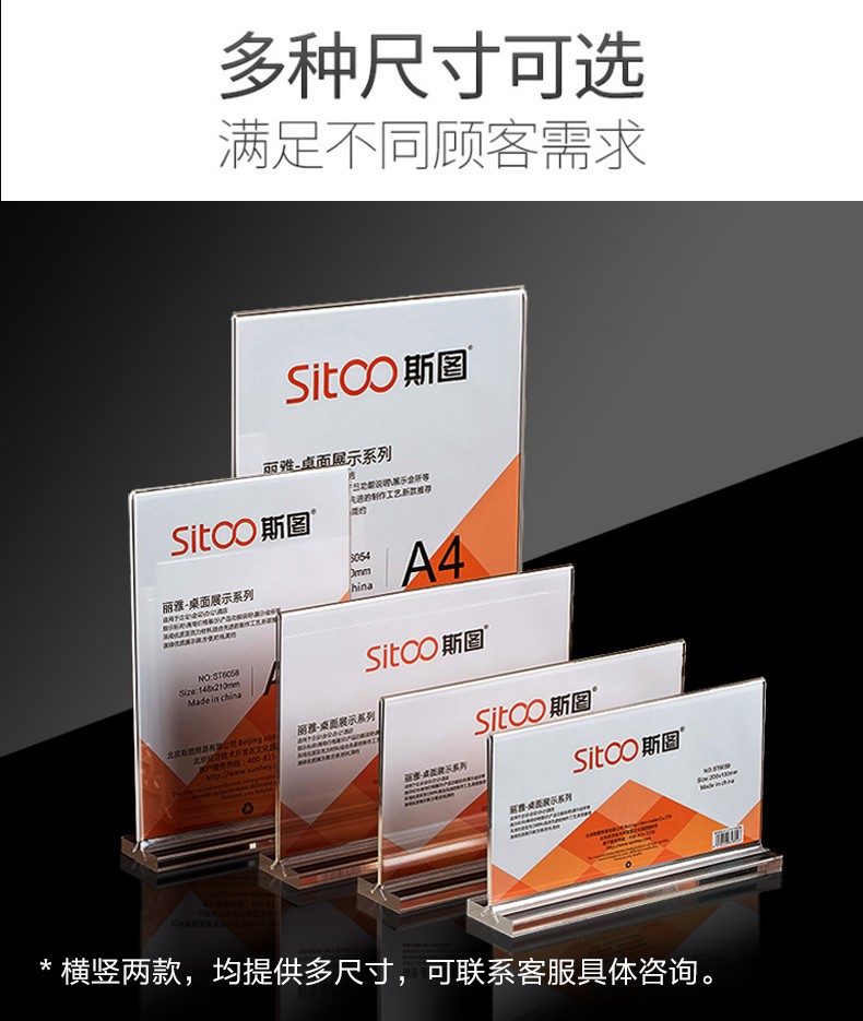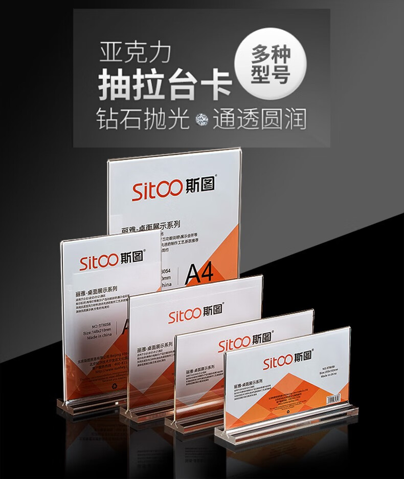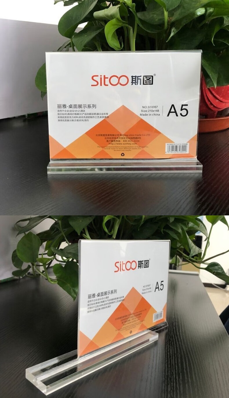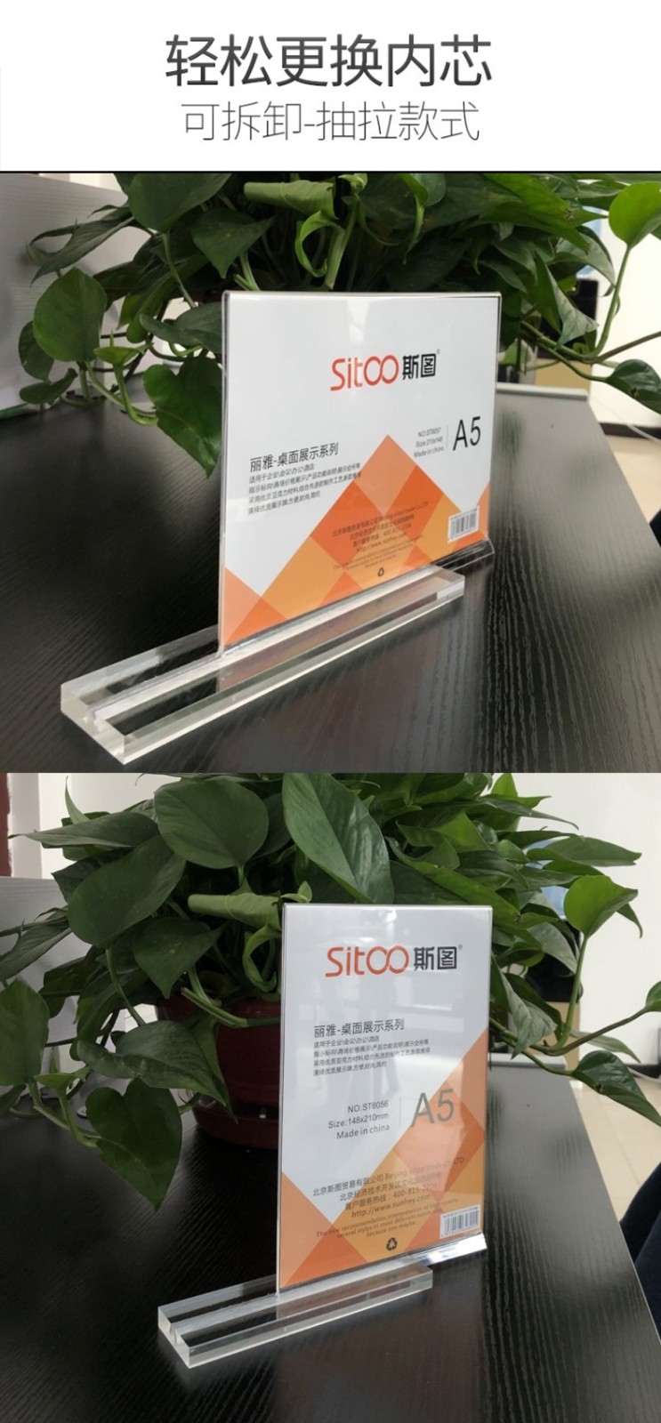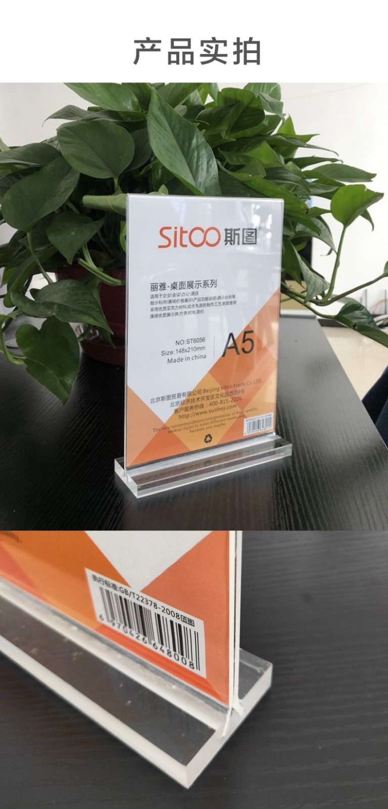 斯图亚克力台卡台牌桌牌双面透明T型台签展示牌桌面提示牌透明底抽拉6055横版(A4)297*210mm 2个装