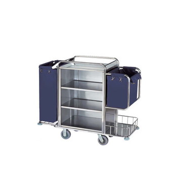 庄太太【双桶全钢不锈钢】新布草车酒店双边客房工作车收纳布草车房口车清洁服务车推车
