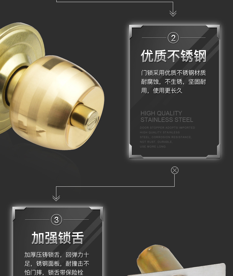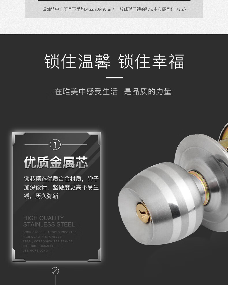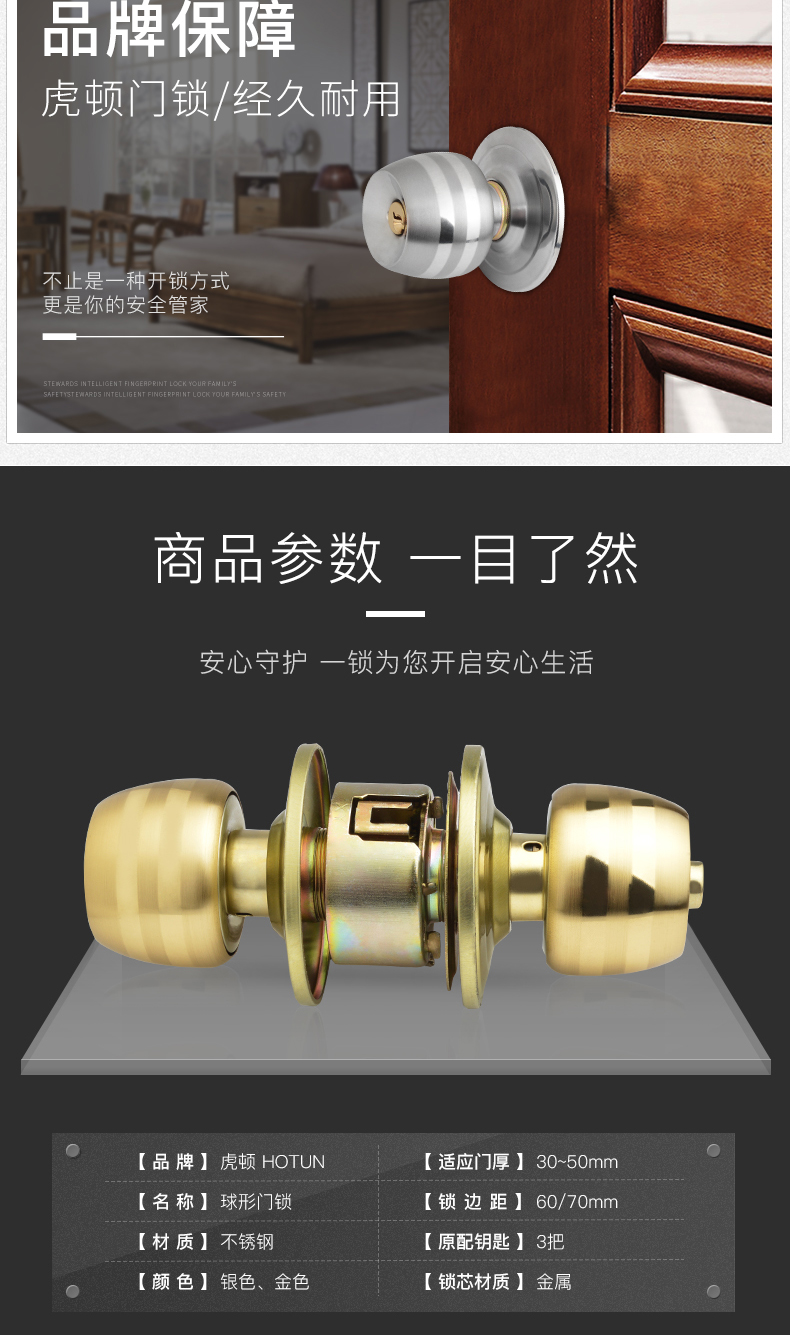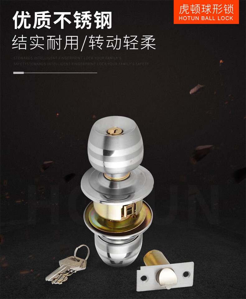 虎顿 HOTUN 球形门锁 室内卧室房门球锁 厨房不锈钢卫生间球型锁5831小球-70
