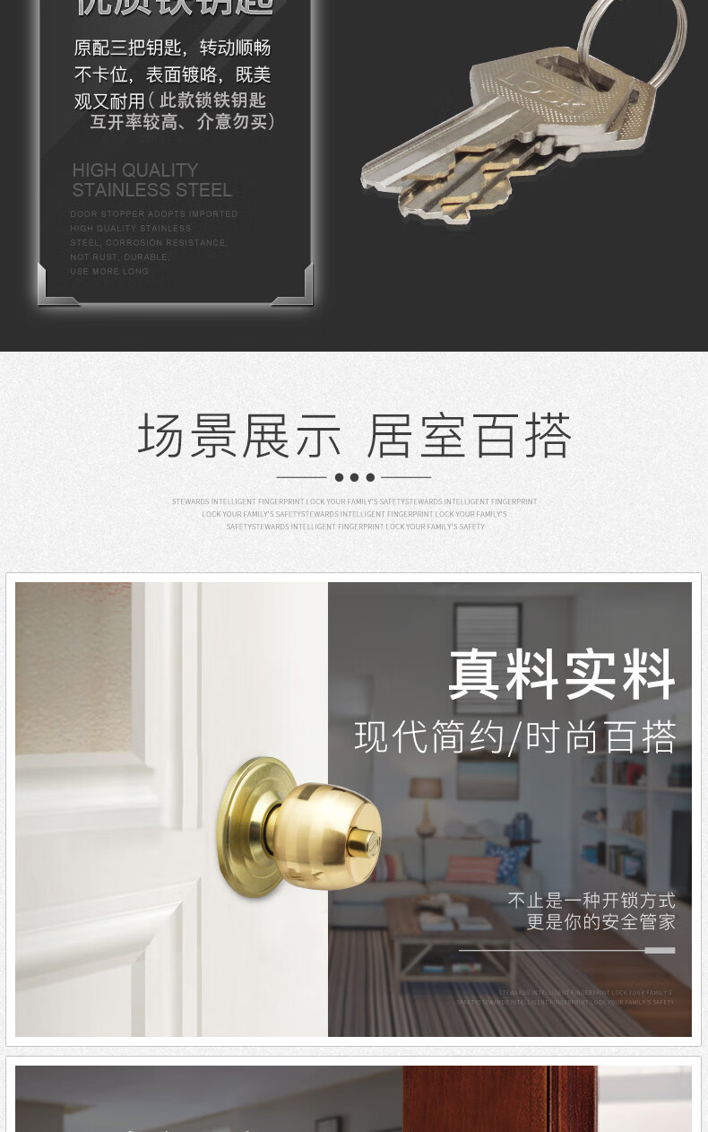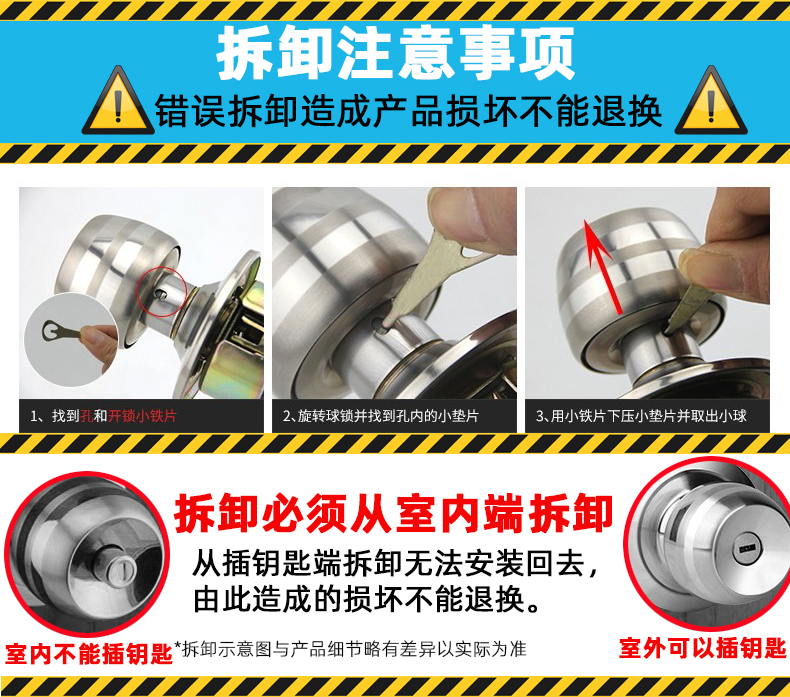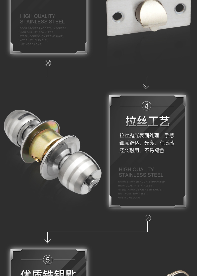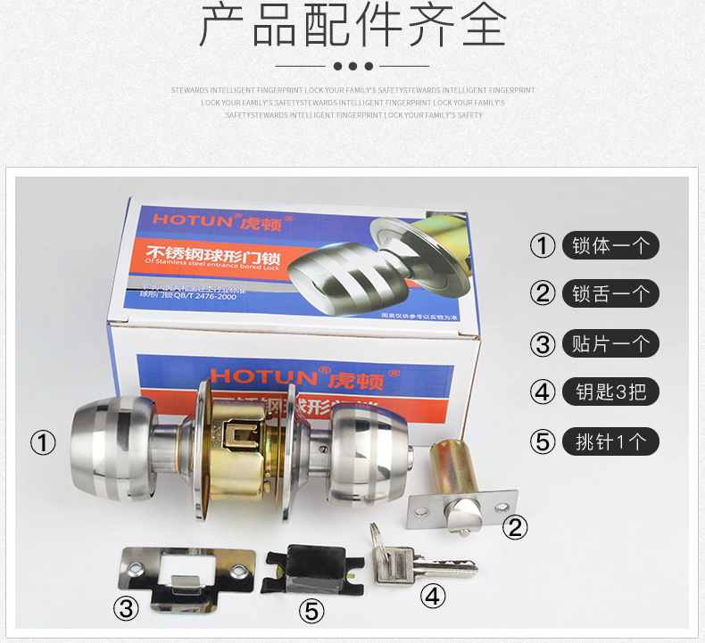 虎顿 HOTUN 球形门锁 室内卧室房门球锁 厨房不锈钢卫生间球型锁5831小球-70
