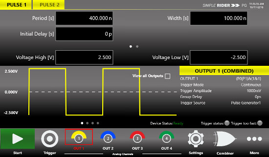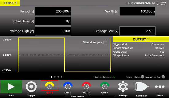 Simple Rider UI专用于触摸屏并且能够把现代脉冲和波形发生器的所有功能都置于你的指尖下。所有仪器控件和参数都可通过直观的用户界面访问,采用平板和现代智能手机的简洁设计:触摸功能和手势都能被科学家和工程师用于创建脉冲或复杂的脉冲组合,只需几次触摸。