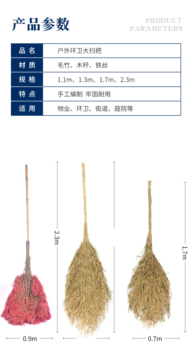 领象 环卫扫把笤帚扫帚 扫马路竹扫把 竹扫帚大扫把高2.1米塑料丝款