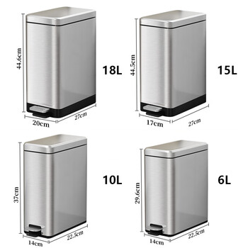 冠峰 不锈钢15L 不锈钢防水防异味垃圾桶大号轻奢夹缝脚踏式GNG-440