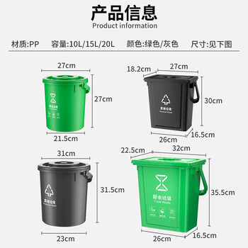 Supercloud 厨房垃圾桶 室内带盖茶叶沥水桶茶水桶手提圆形15L带提手【其他垃圾】