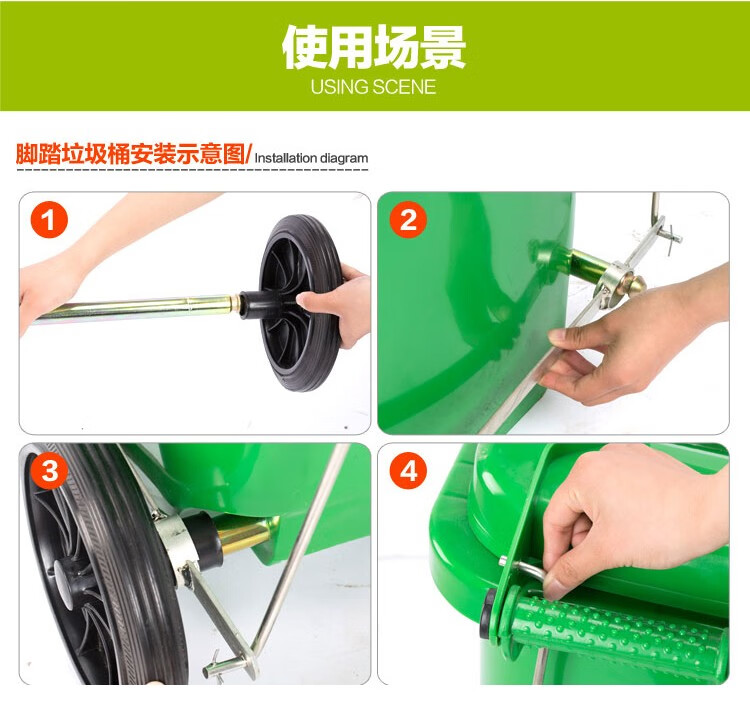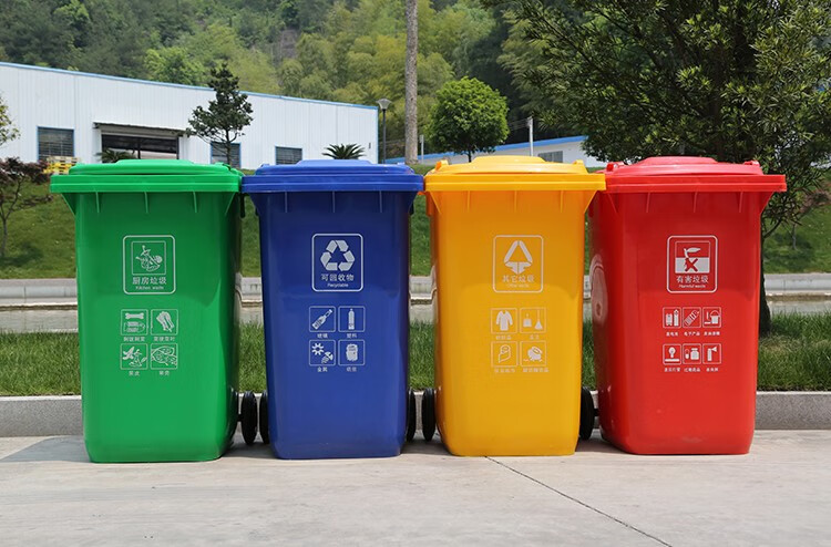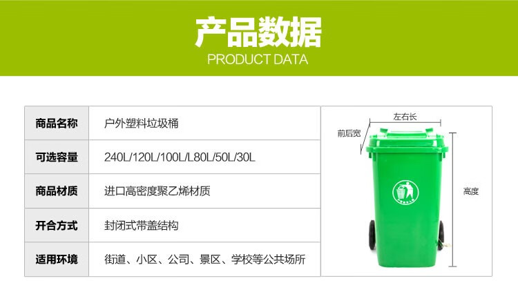 庄太太【240L脚踏款可印刷标识LOGO】分类垃圾桶大号户外环卫商用带盖带轮垃圾箱室外