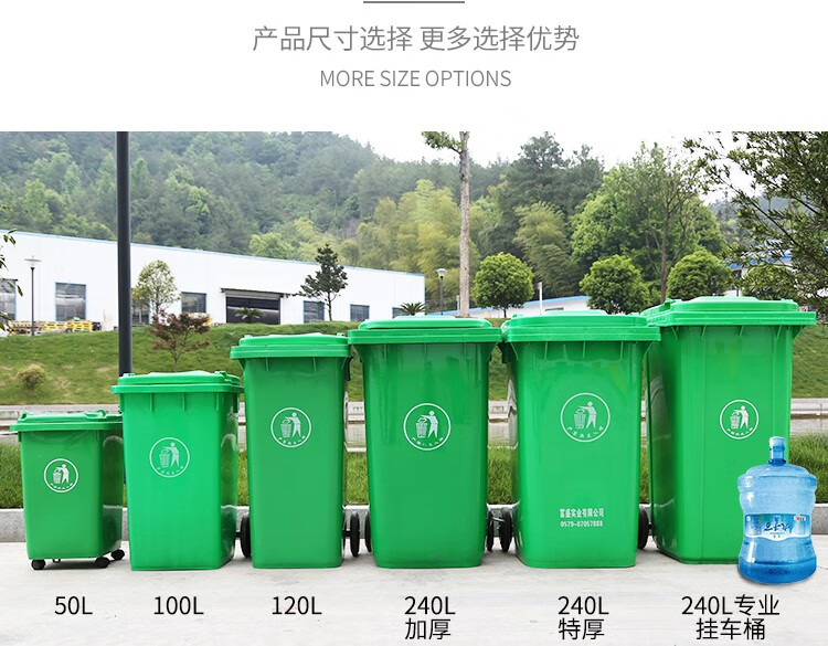 科力邦(Kelibang) 户外垃圾桶 大号塑料加厚50L商用环卫垃圾桶带盖分类工业小区物业翻盖果皮箱 绿色 单个