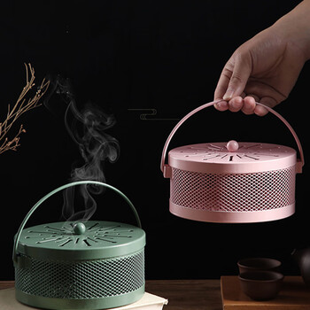 庄太太【梅花烙黑色】蚊香盘托防烫蚊香盒铁艺带盖接灰盘ZTT-9376B