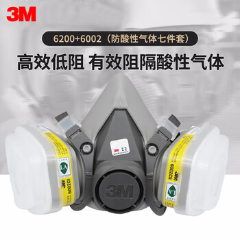 3M 6200半面罩+6002CN滤盒+5N11滤棉+501滤棉盖防酸性气体等 6200+6002