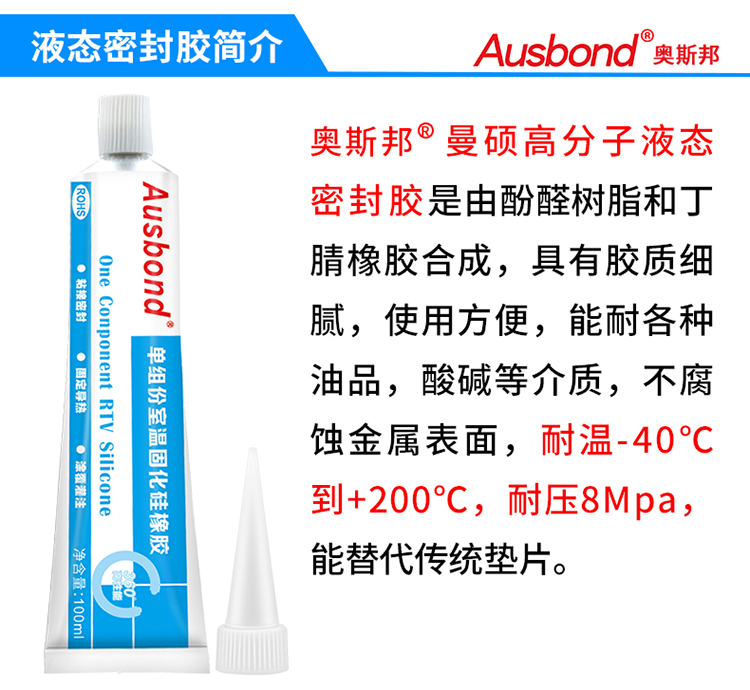 奥斯邦(Ausbond)液态密封胶机械设备汽车水箱水管电机油泵水泵法兰耐油耐高温防水耐压抗震动维修车用90克