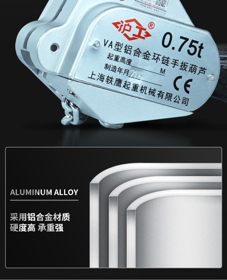沪工 铝合金手扳葫芦手摇环链拉紧器紧线器 3吨1.5米
