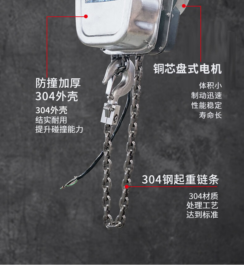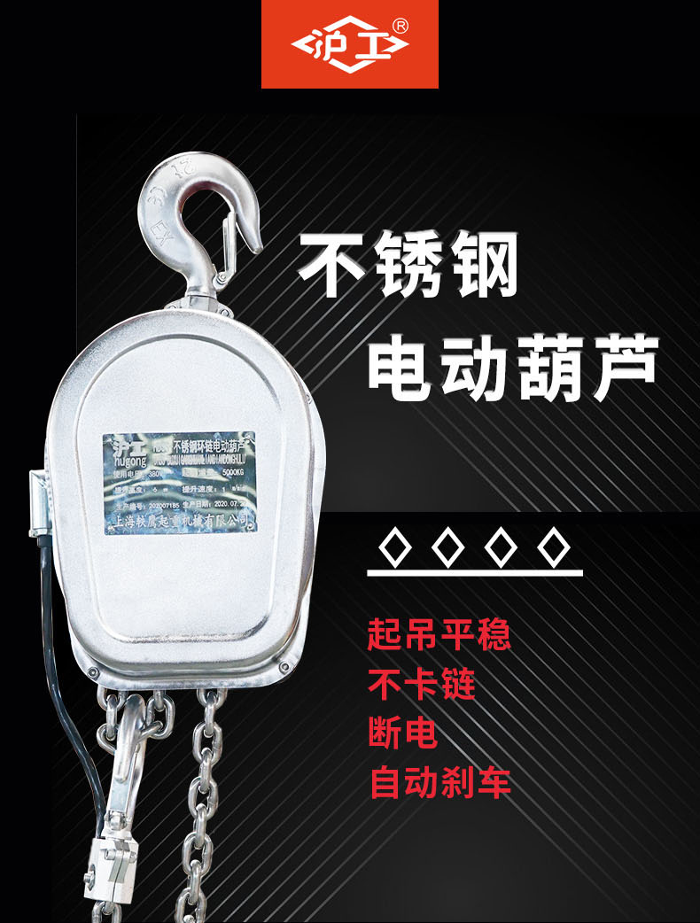 沪工 304不锈钢电动葫芦环链提升机升降机1吨2吨 5吨3米(运行式)
