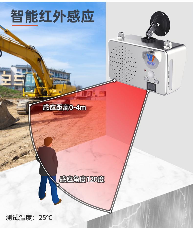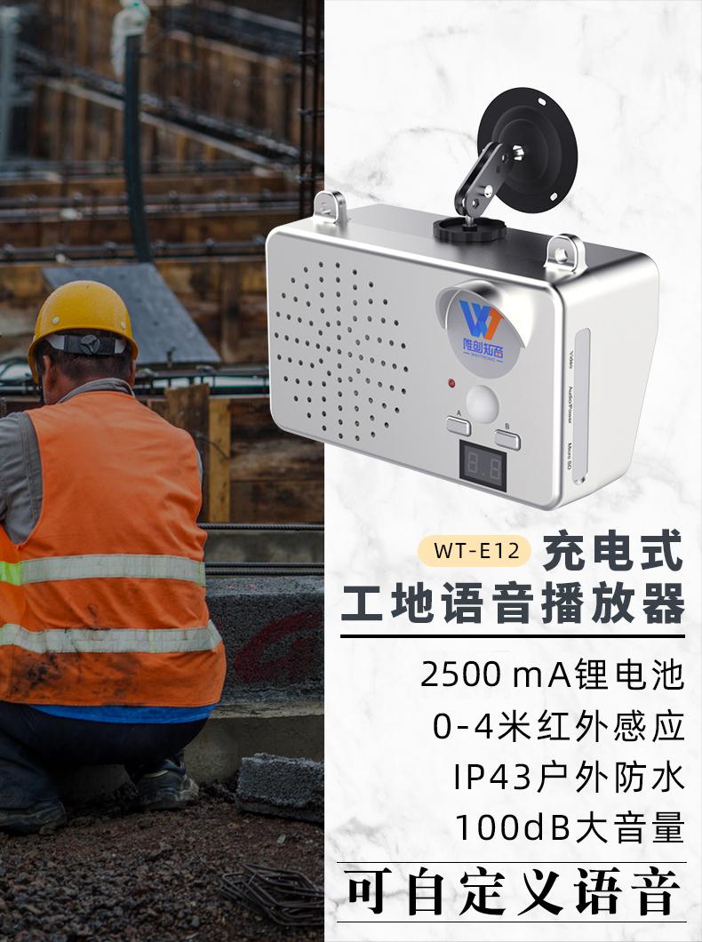 唯创WT-E12工地安全人体感应语音提示器 定制语音红外线提醒户外防雨播报器+可充电锂电池