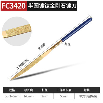 卡夫威尔 半圆镀钛金刚石锉刀打磨工具3*140mm FC3420