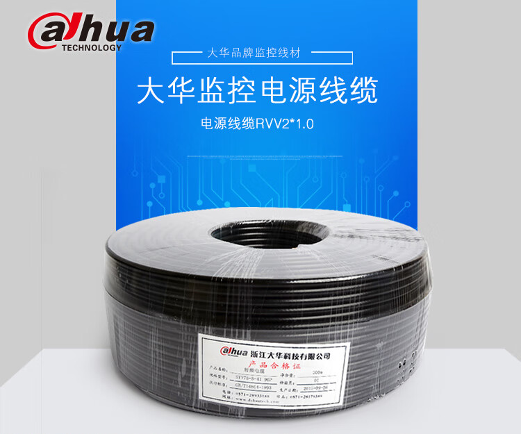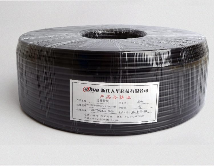 大华 (dahua) 电线电缆 RVV2*1.0平方国标两芯电线2芯多股铜丝 软护套线 电源线 黑色 200米