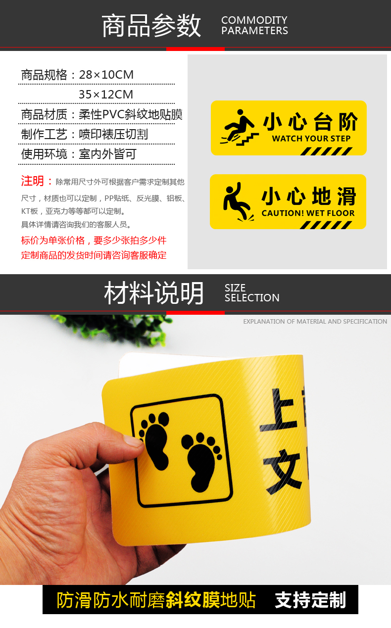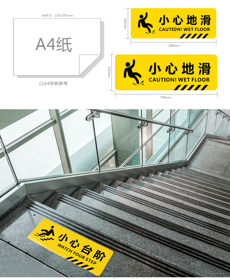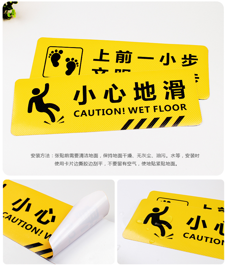 BELIK 小心碰头地面警示贴 4张 28*10CM 斜纹防滑防水耐磨地贴商场工厂洗手间厕所警告标识贴 DT-23