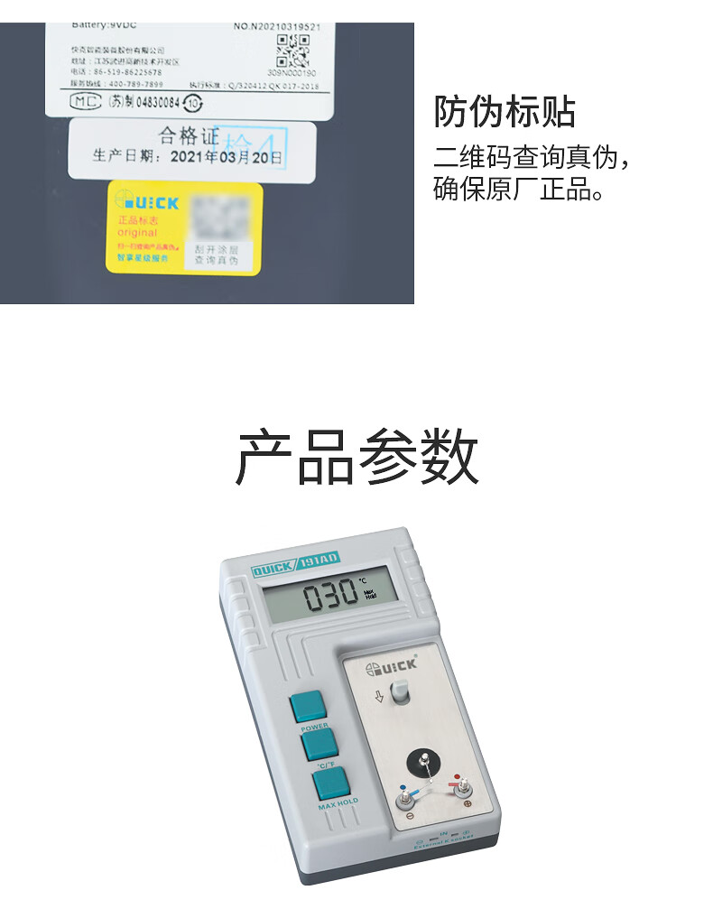 QUICK快克191AD温度测试仪数值显示焊台烙铁头温度焊咀温度校准仪焊台 191AD