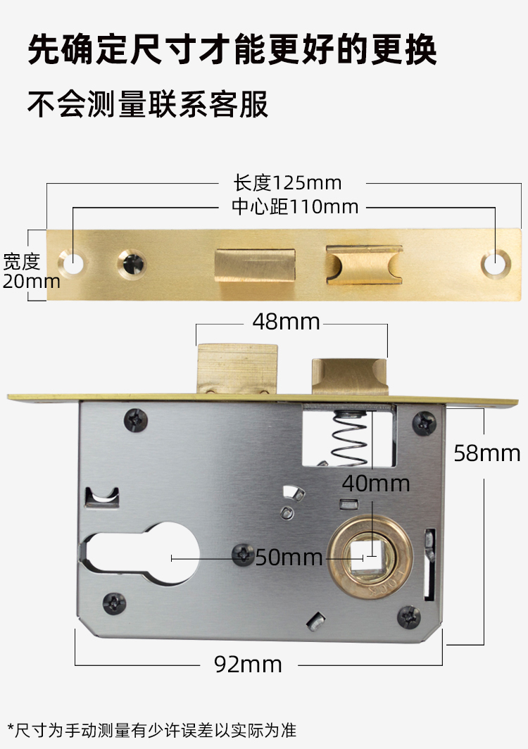 虎顿 HOTUN 室内门锁体卧室房门锁配件通用型木门锁体小50锁体5040-125B