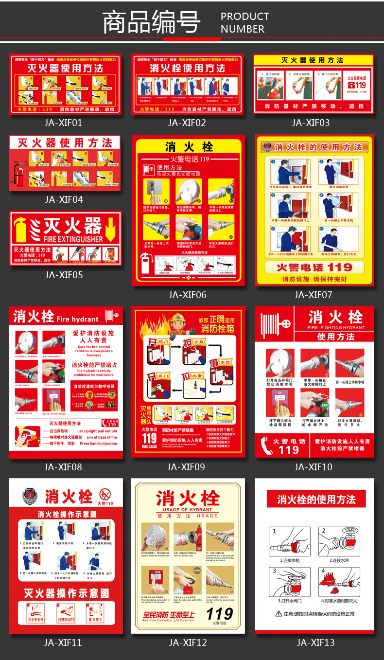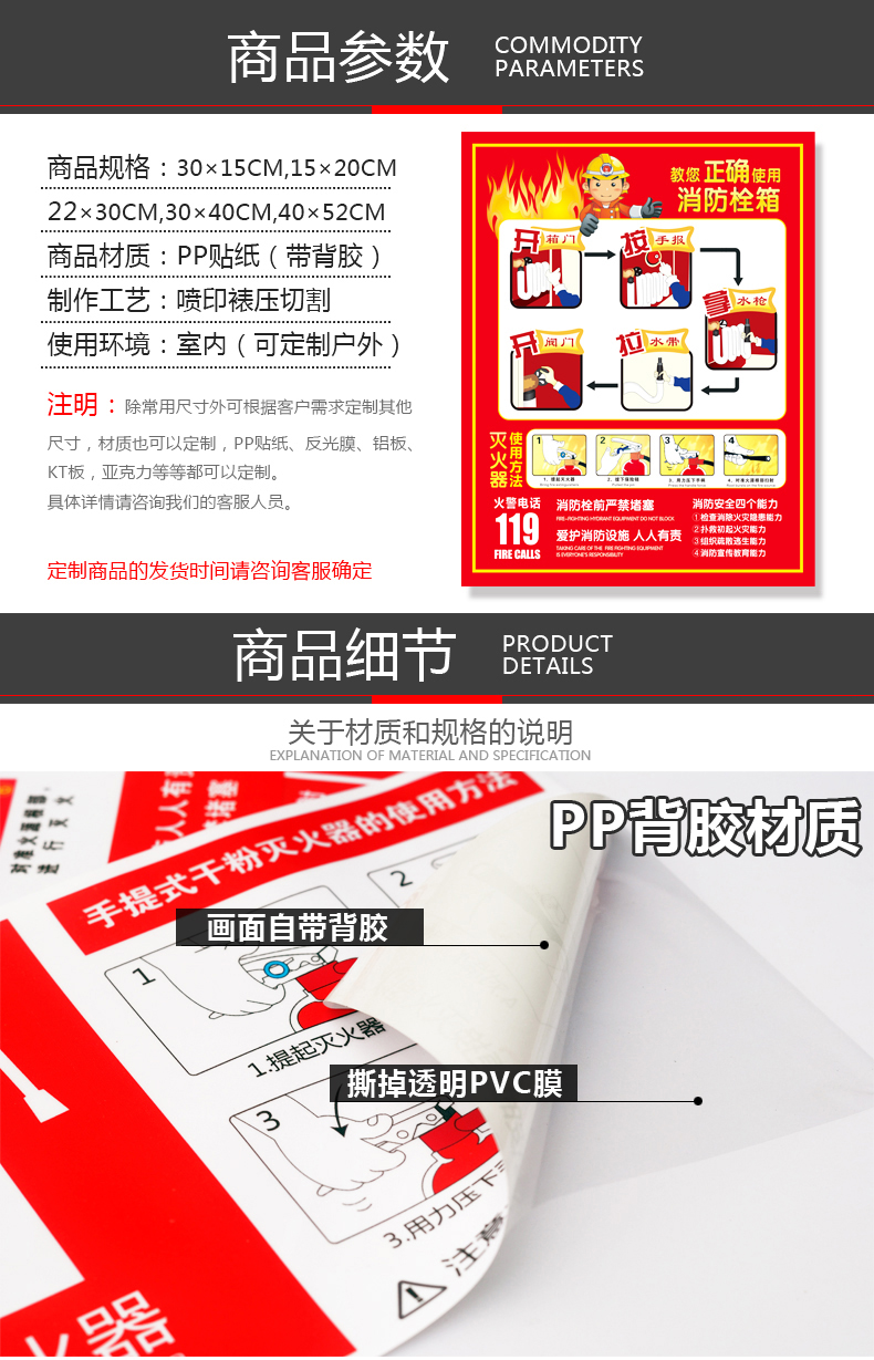BELIK 灭火器使用方法规范 5张装 30*15CM 不干胶贴纸操作示范标识温馨提示贴纸消防安全检查标识定做 XF-6