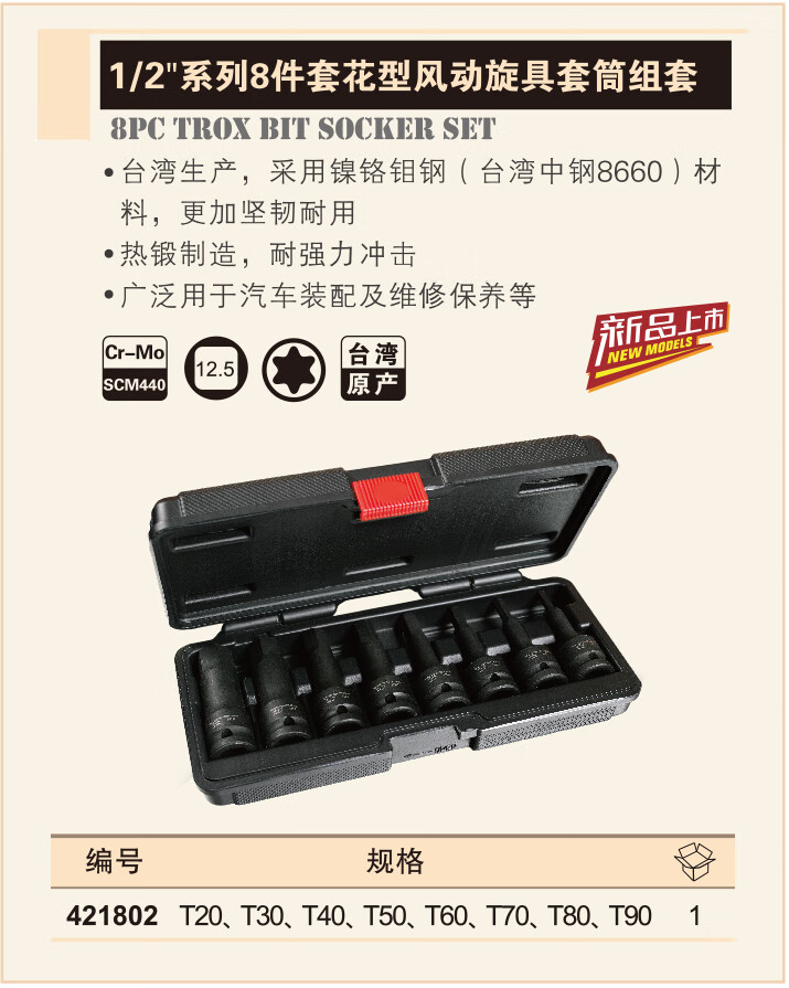 艾威博尔( EVER POWER) 421802 8件套 1/2"系列气动旋具花型套筒组套 【预计13天出货】