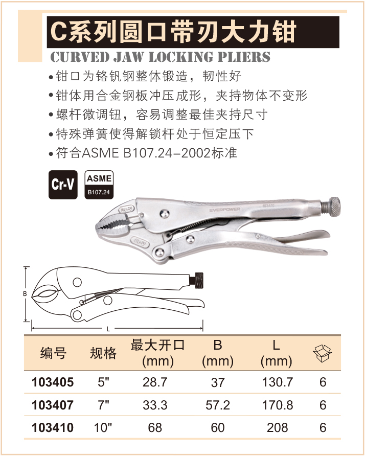 艾威博尔( EVER POWER) 103407 C系列圆口带刃大力钳 【预计13天出货】