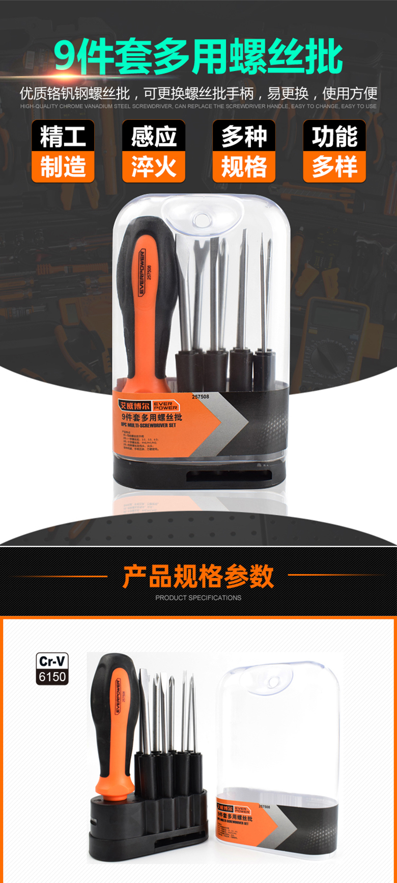 艾威博尔( EVER POWER) 257508 9件套多用螺丝批 【预计13天出货】