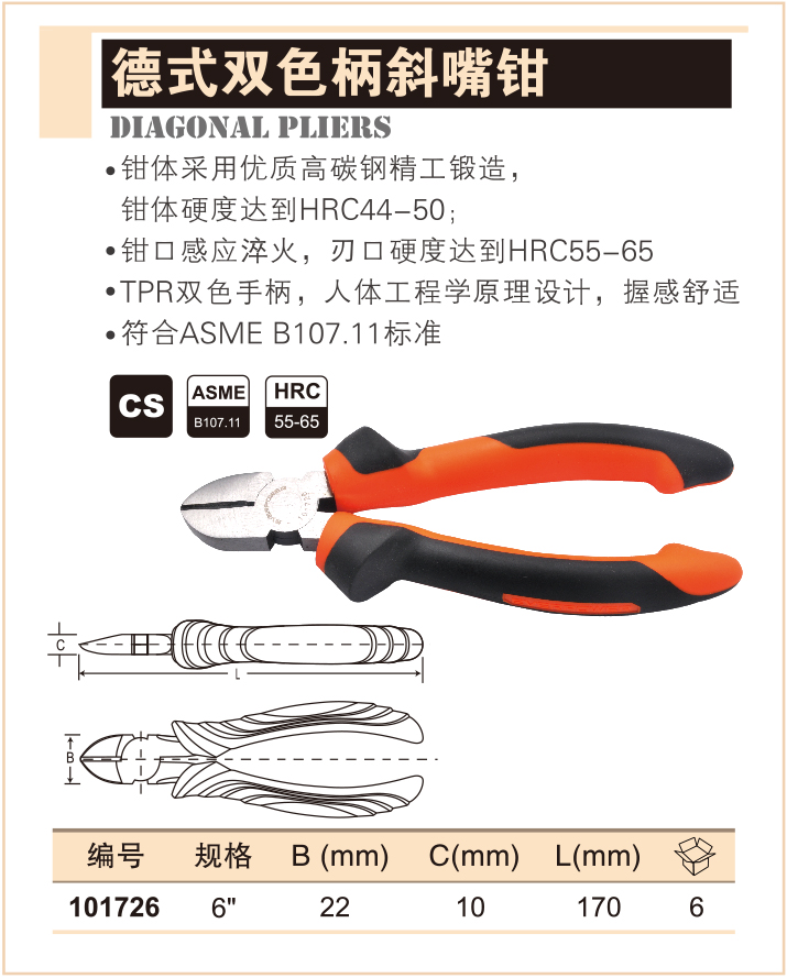 艾威博尔( EVER POWER) 101726 德式双色柄斜嘴钳