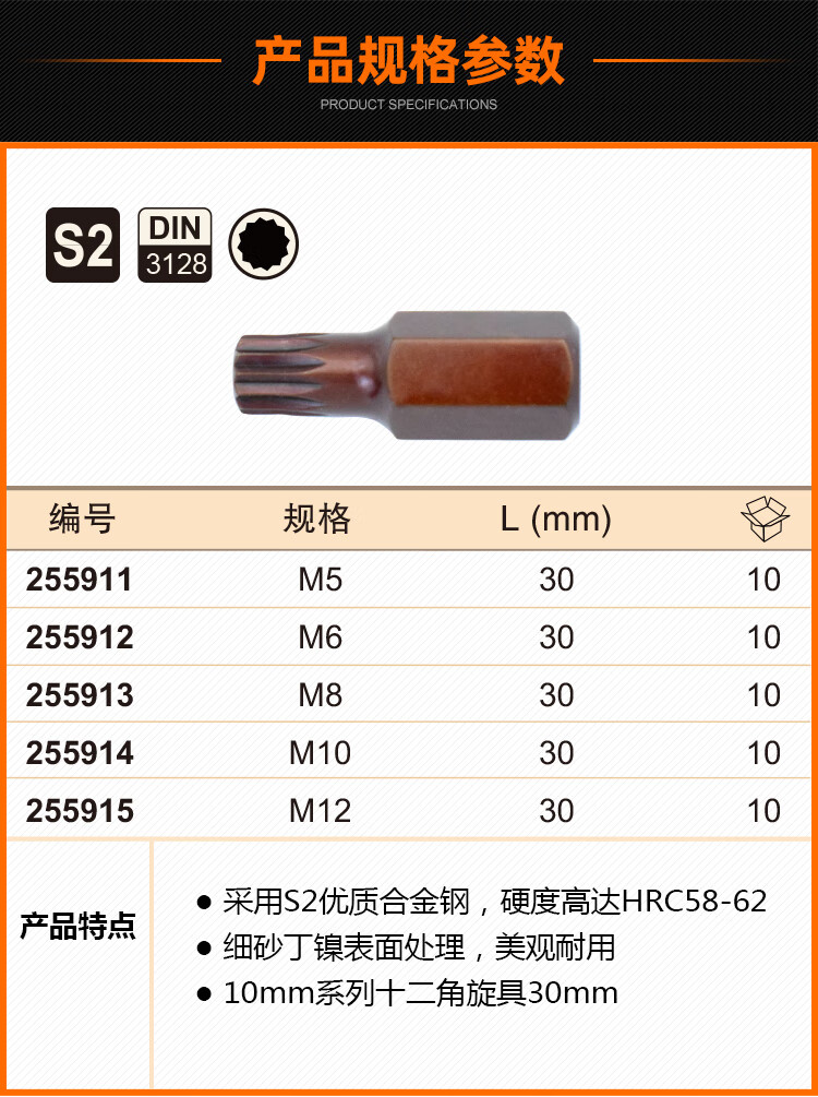 艾威博尔( EVER POWER) 255914 10MM系列30MM长十二角旋具M5 【预计13天出货】
