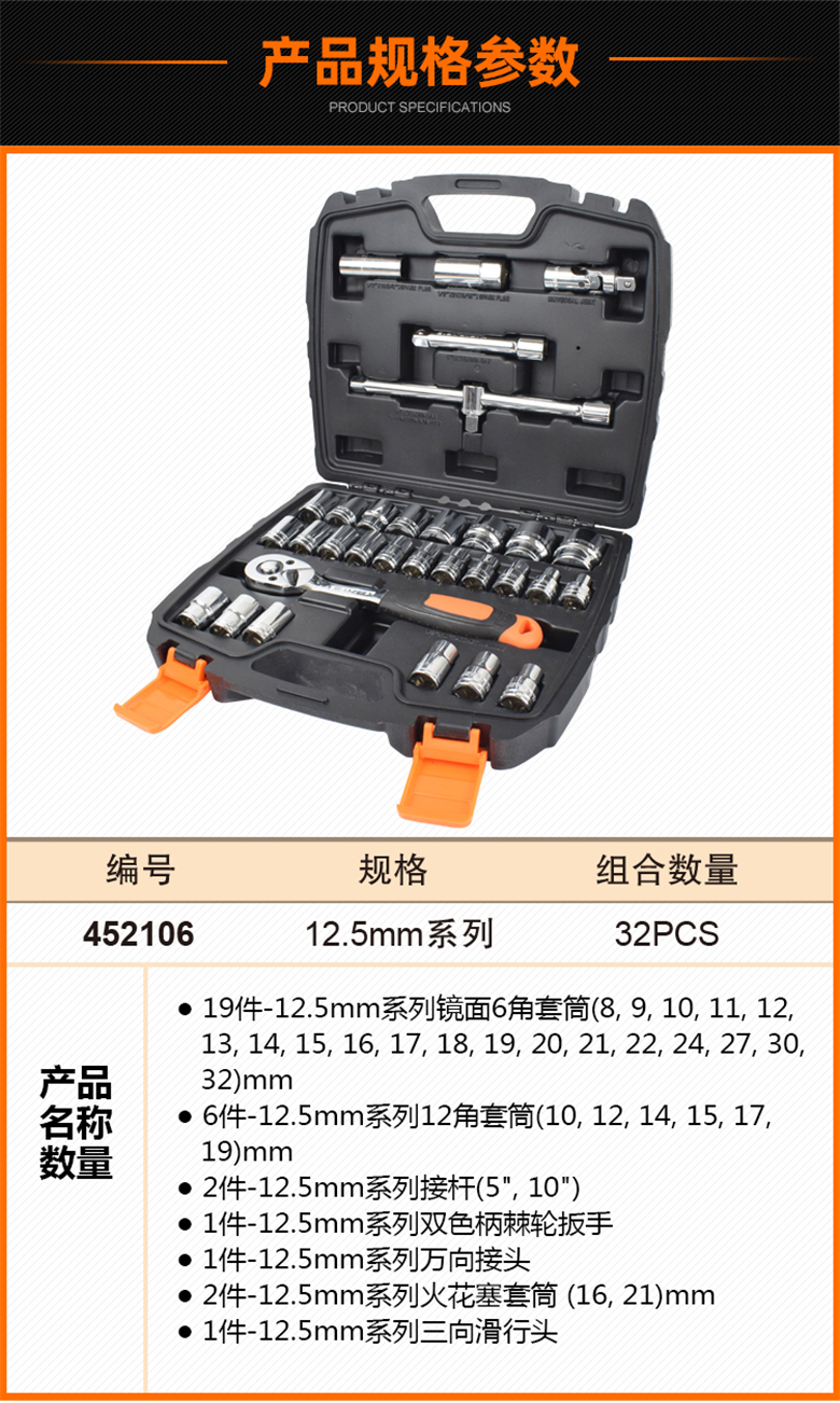 艾威博尔( EVER POWER) 452107 C系列22件12.5MM套筒组套 【预计13天出货】