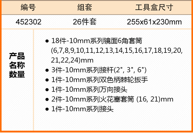 艾威博尔( EVER POWER) 452302 C系列26件10MM套筒组套 【预计13天出货】