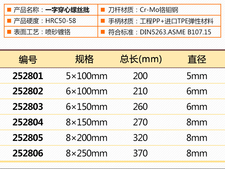 艾威博尔( EVER POWER) 252802 C系列一字穿心螺丝批 【预计13天出货】