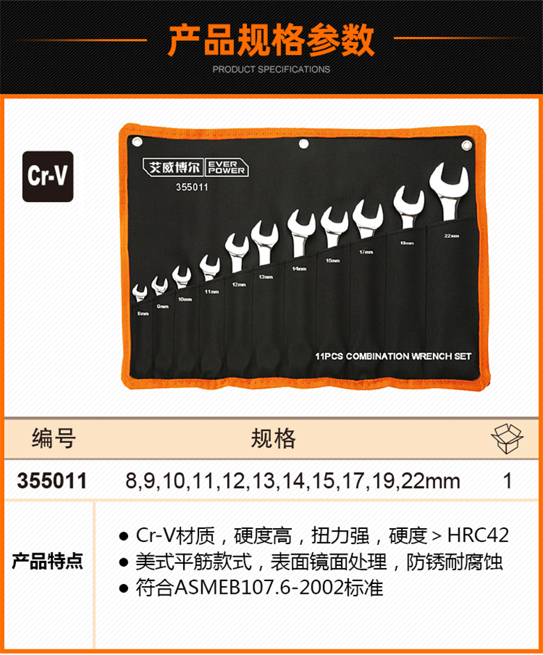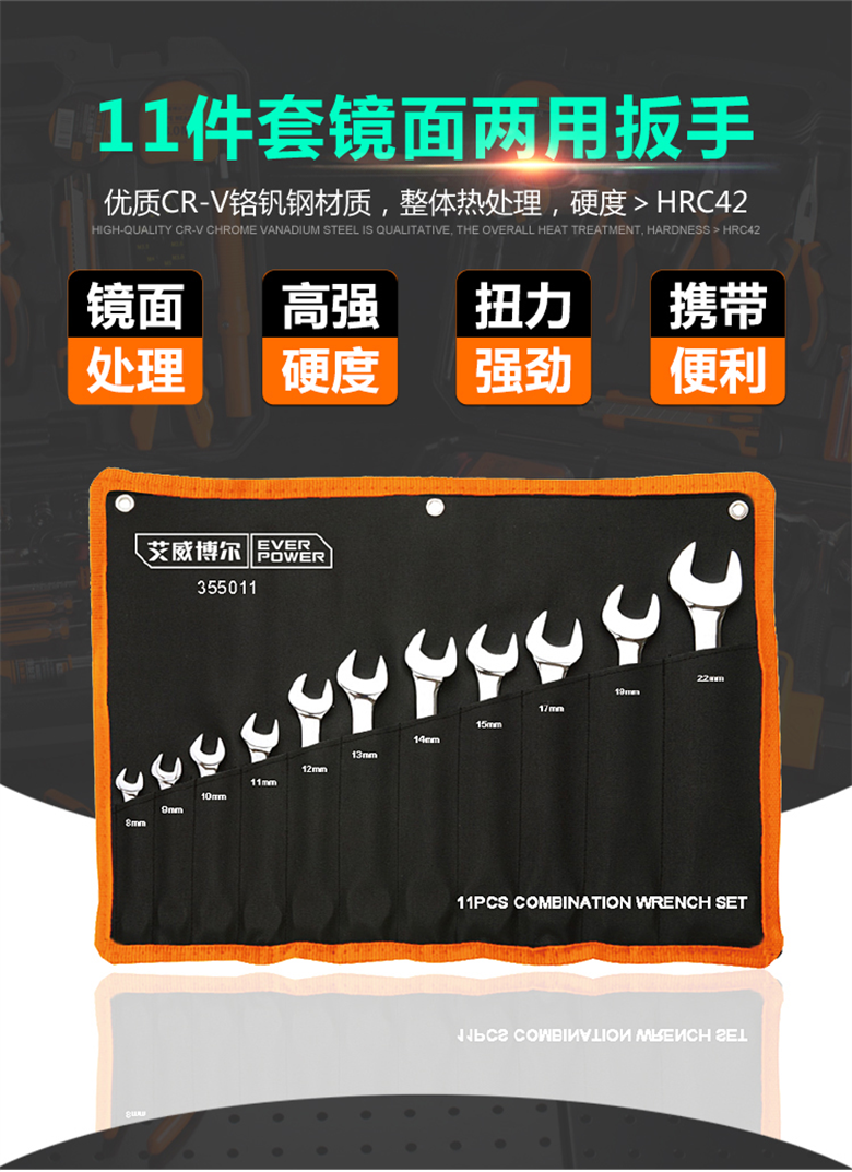艾威博尔( EVER POWER) 355011 11件套镜面两用扳手 【预计13天出货】