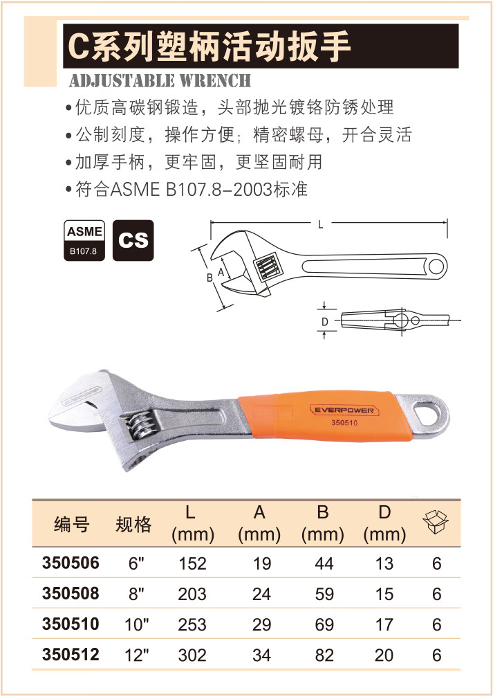 艾威博尔( EVER POWER) 350506 C系列塑柄活动扳手