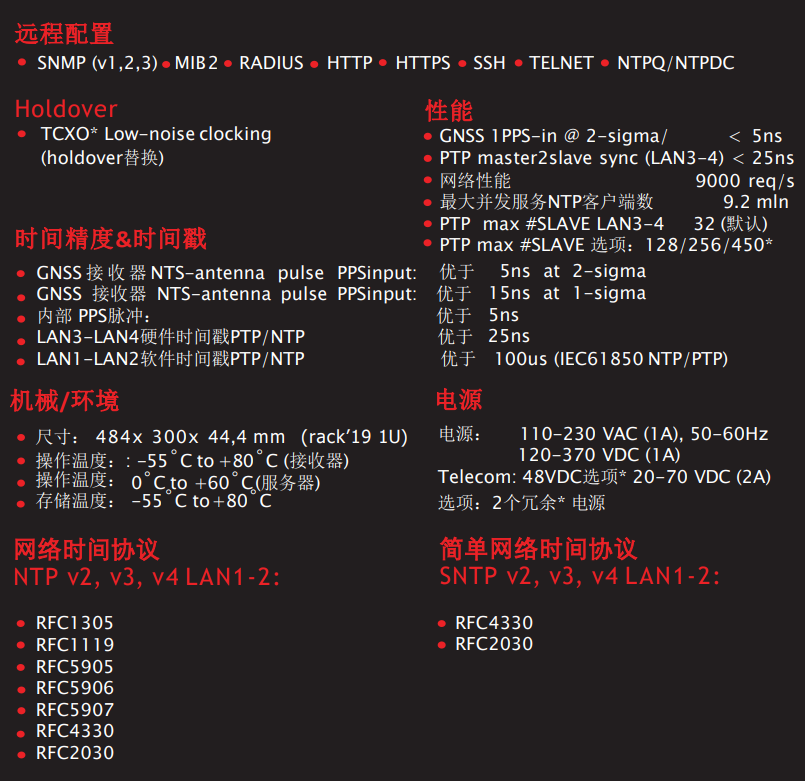 NTS-3000是STRATUM-1,支持软件标记的PTP / IEEE1588 GRANDMASTER。它能在LAN中提供μs级别的精度。该服务器支持闰秒,能够无变化地同步UTC时间(无跳转),可同时为多达100,000个NTP客户端提供服务。