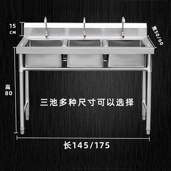 康丽雅K-1322不锈钢拖把池酒店学校不锈钢水池洗碗水槽加厚三槽175*60*80