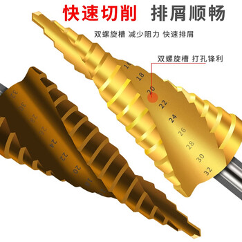 卡夫威尔 多功能宝塔钻头阶梯钻锥形金属开孔器钻孔扩孔打孔器6542镀钛 4-20mm 螺旋槽 AI3507