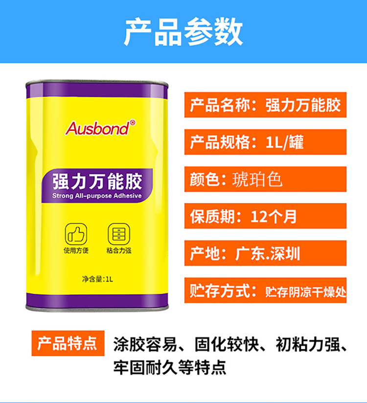 奥斯邦(Ausbond)强力万能胶多功能粘得牢粘接塑料金属皮革木工用木头木材修补胶瓷砖粘地毯墙纸布接缝胶1L