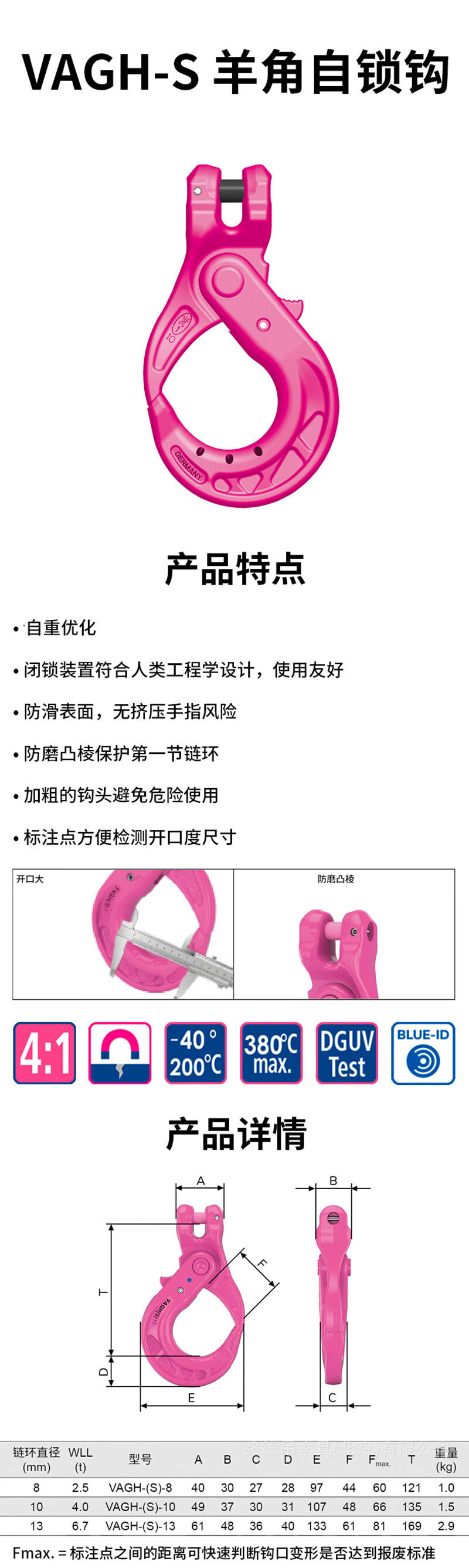 路德(RUD)羊角自锁钩VAGH-(S)-10载荷4t 德国进口吊点吊钩