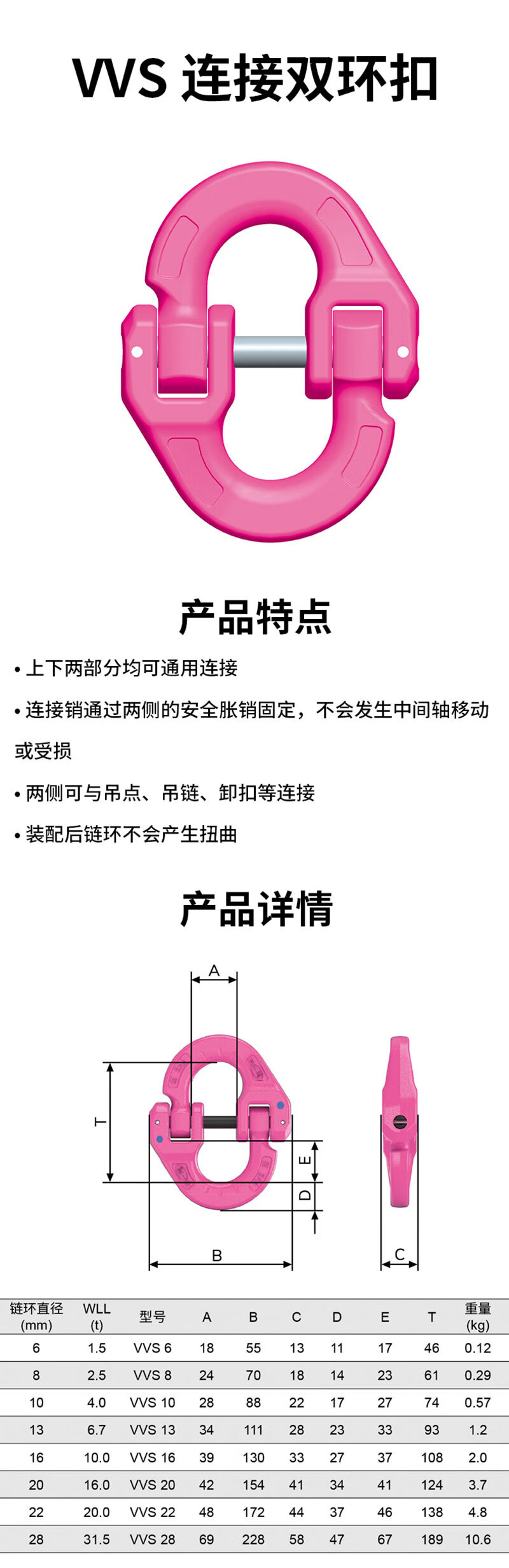 路德(RUD)连接双环扣VVS-8载荷2.5t德国进口蝴蝶扣通用连接环