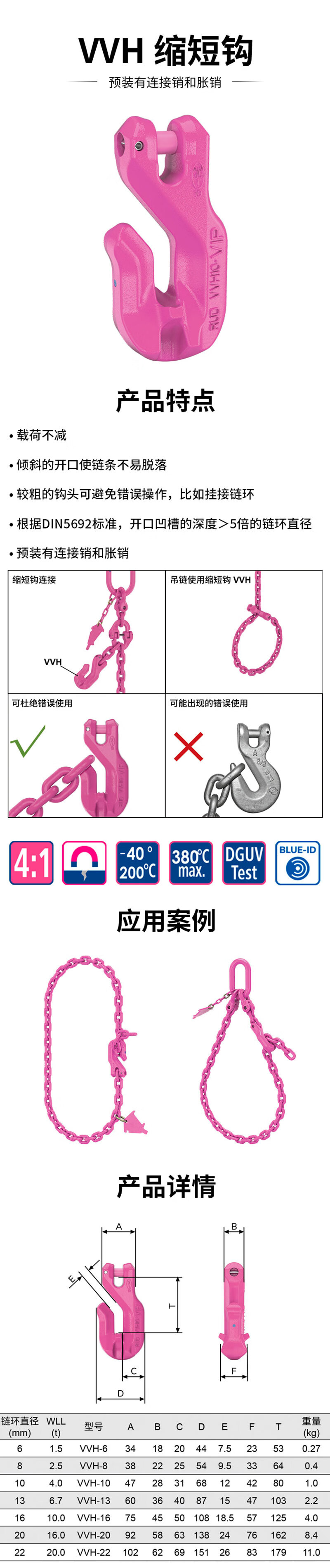 路德(RUD)缩短钩VVH-10载荷4t 德国进口链条缩短器钩子