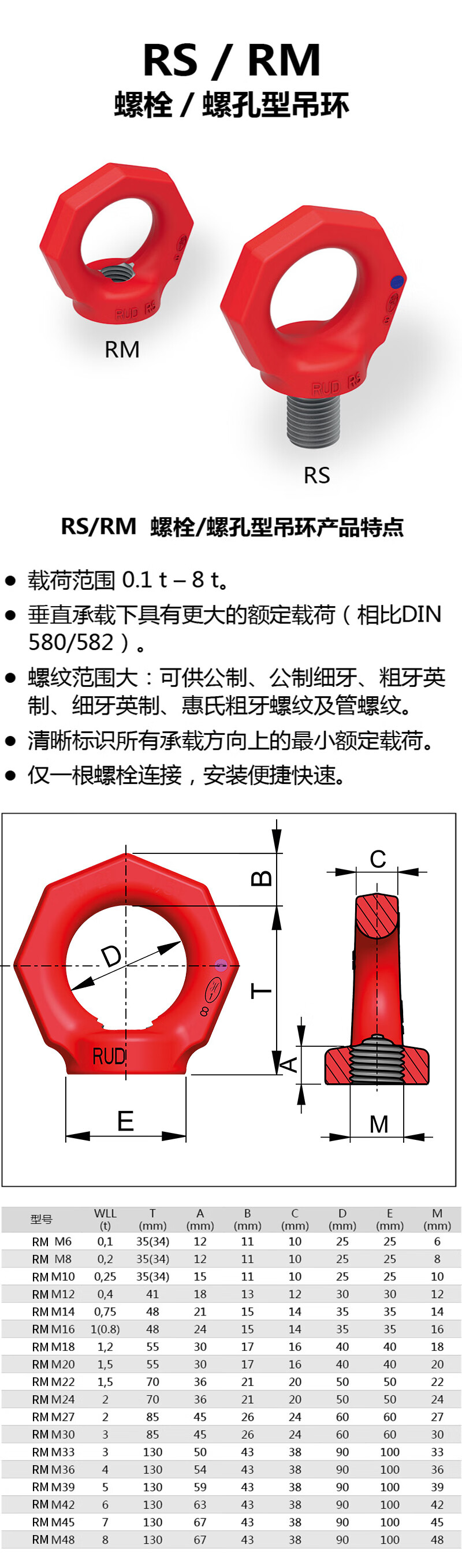 路德(RUD)螺孔型旋转吊环RM-M20载荷1.5t 螺纹可选范围大