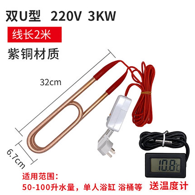 汉河浴缸浴盆加热棒 潜水电加热管 木桶电热棒浴桶热得快 紫铜加热管定制