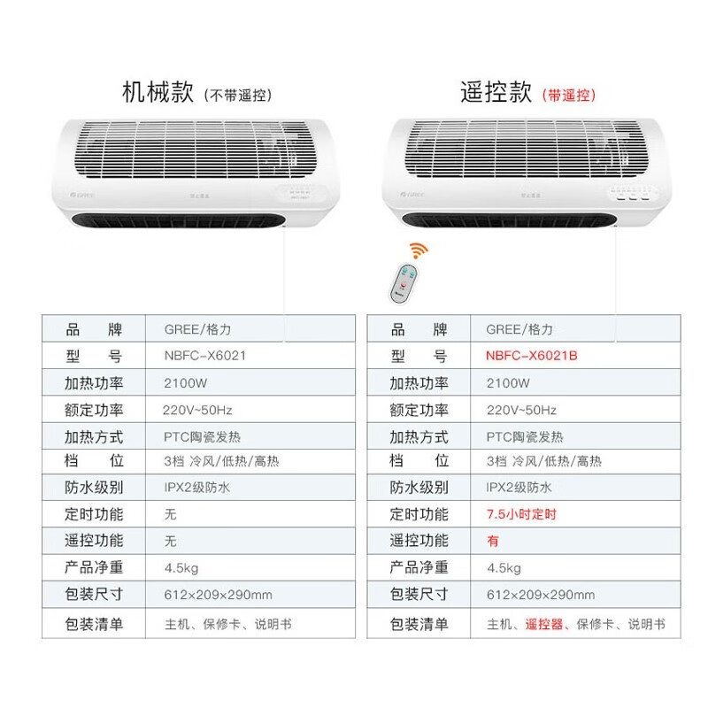 汉河取暖器壁挂式暖风机浴室卫生间防水速热热风机电暖气冷暖两用电暖器 定制定制 X6021B 遥控款