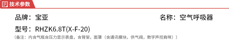 H 宝亚 RHZK6.8T(X-F-20)内含气瓶含压力显示表盘 含背架 面罩 维保1年 货期45天