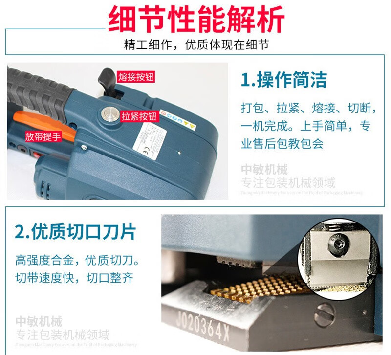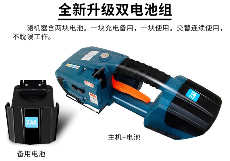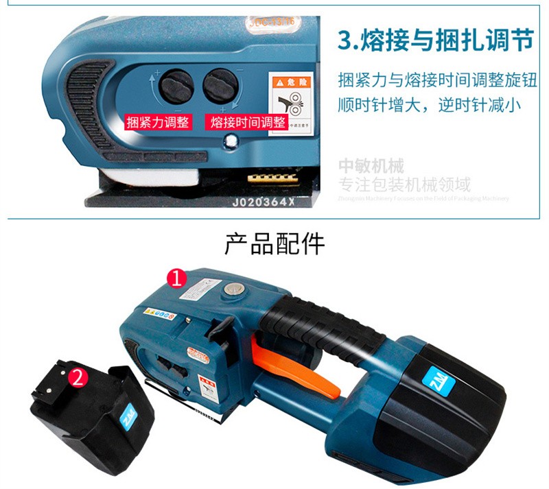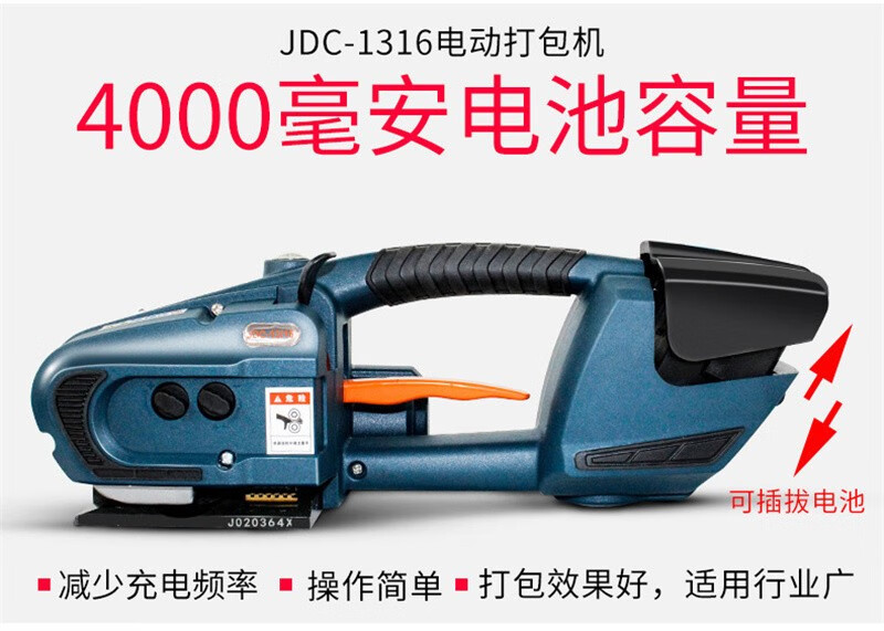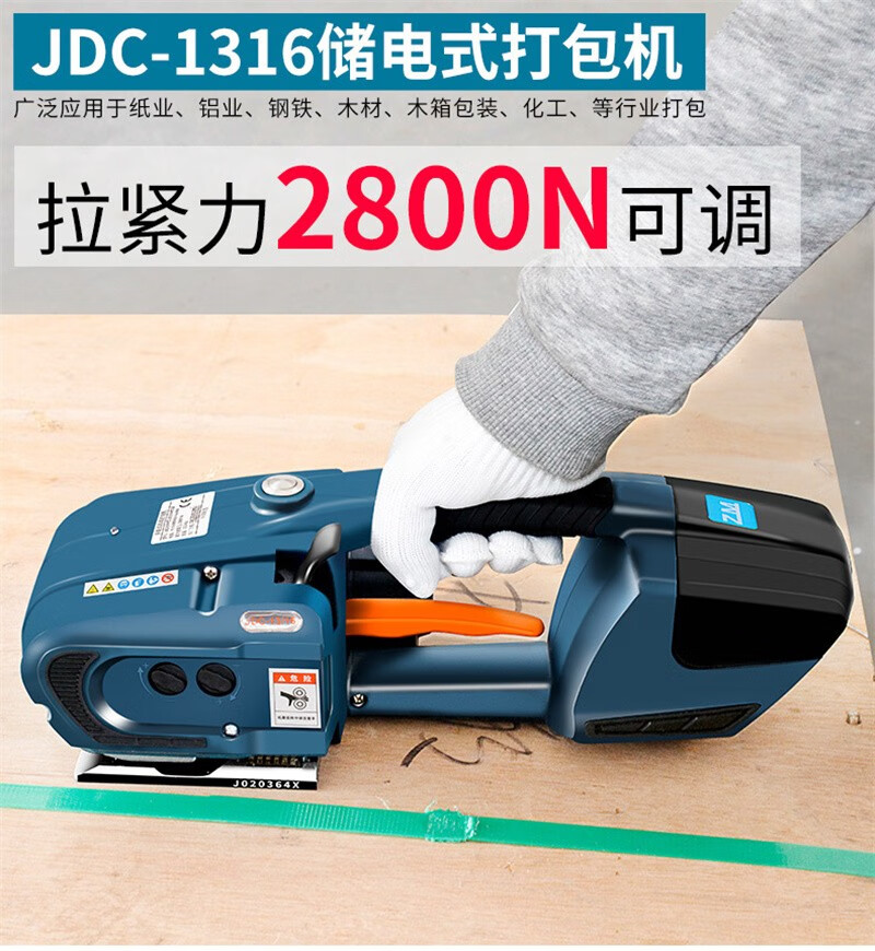JDC13/16 打包机全自动手提式PET塑钢带捆扎器储电式热熔电动打包机拉紧器 配双电池