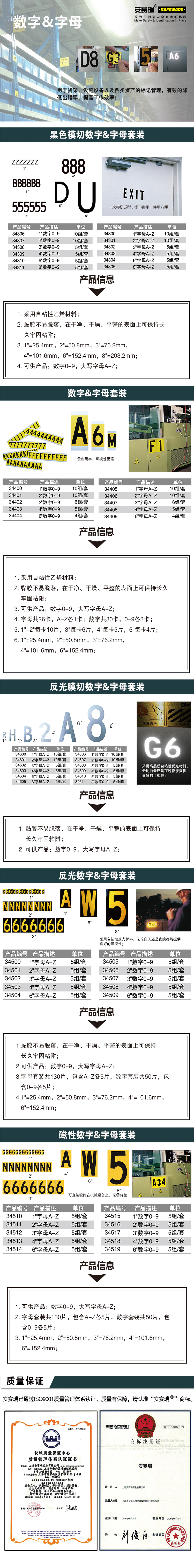 安赛瑞 磁性数字标识套装(0-9各5片)字高50.8mm 软磁数字贴 34516
