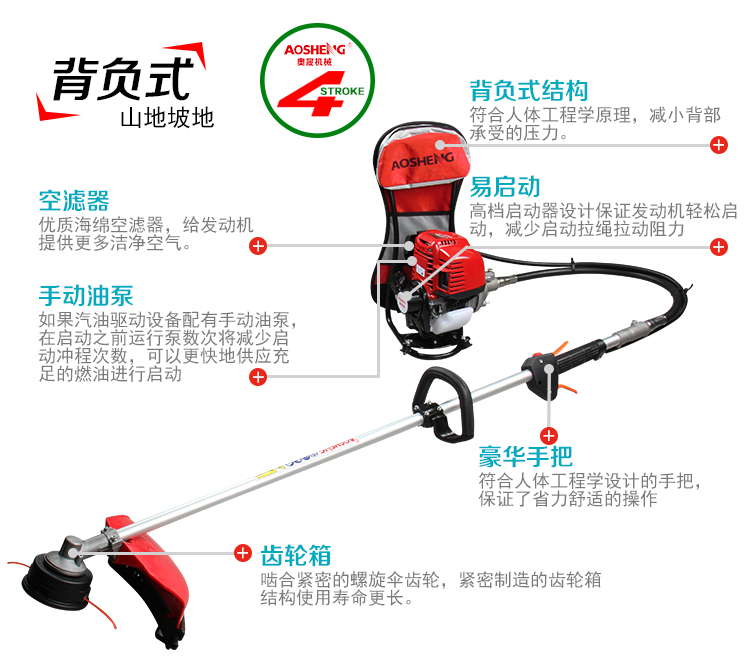 奥晟机械 BG350A-N四冲程汽油割草机背负式割灌机除草打草机割稻机
