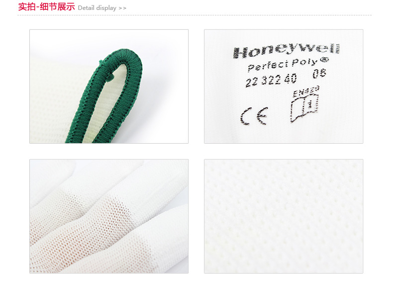 霍尼韦尔 2232240CN-06 针织尼龙劳保工业人员防滑耐磨浸塑防护 尼龙PU工作手套 白色 XS 10副/包 4包起订
