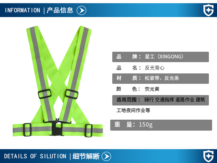 星工 反光背带 松紧反光带弹力反光衣骑行反光马甲荧光黄XGG-1